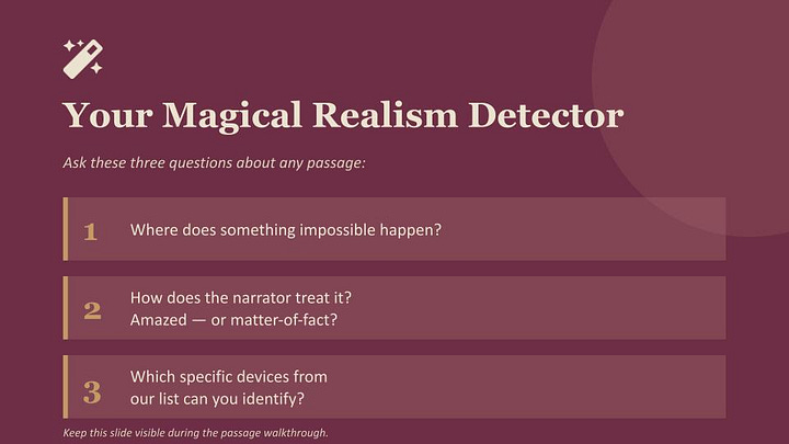 Le pedí a Maestro un plan de clase. Mi idea era explicar qué es el realismo mágico, cómo identificarlo y cómo diferenciarlo de otros géneros.