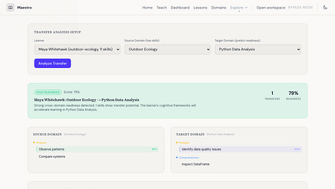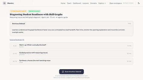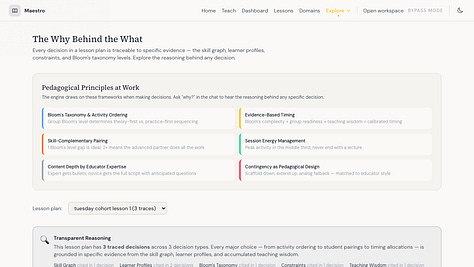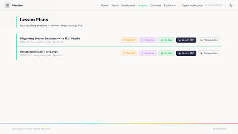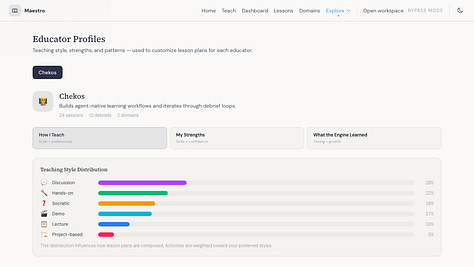 Hace unas semanas estaba en un hackathon y empecé a armar algo simple: un sistema que te ayudara a diseñar una lección adaptada al contexto en el que ibas a enseñar. Si tu lección era en un salón de clases, te daba una cosa. Si era un taller en una conferencia, otra. Si eras naturalista dando un recorrido en un parque, se adaptaba a eso. Criterio pedagógico con contexto real.